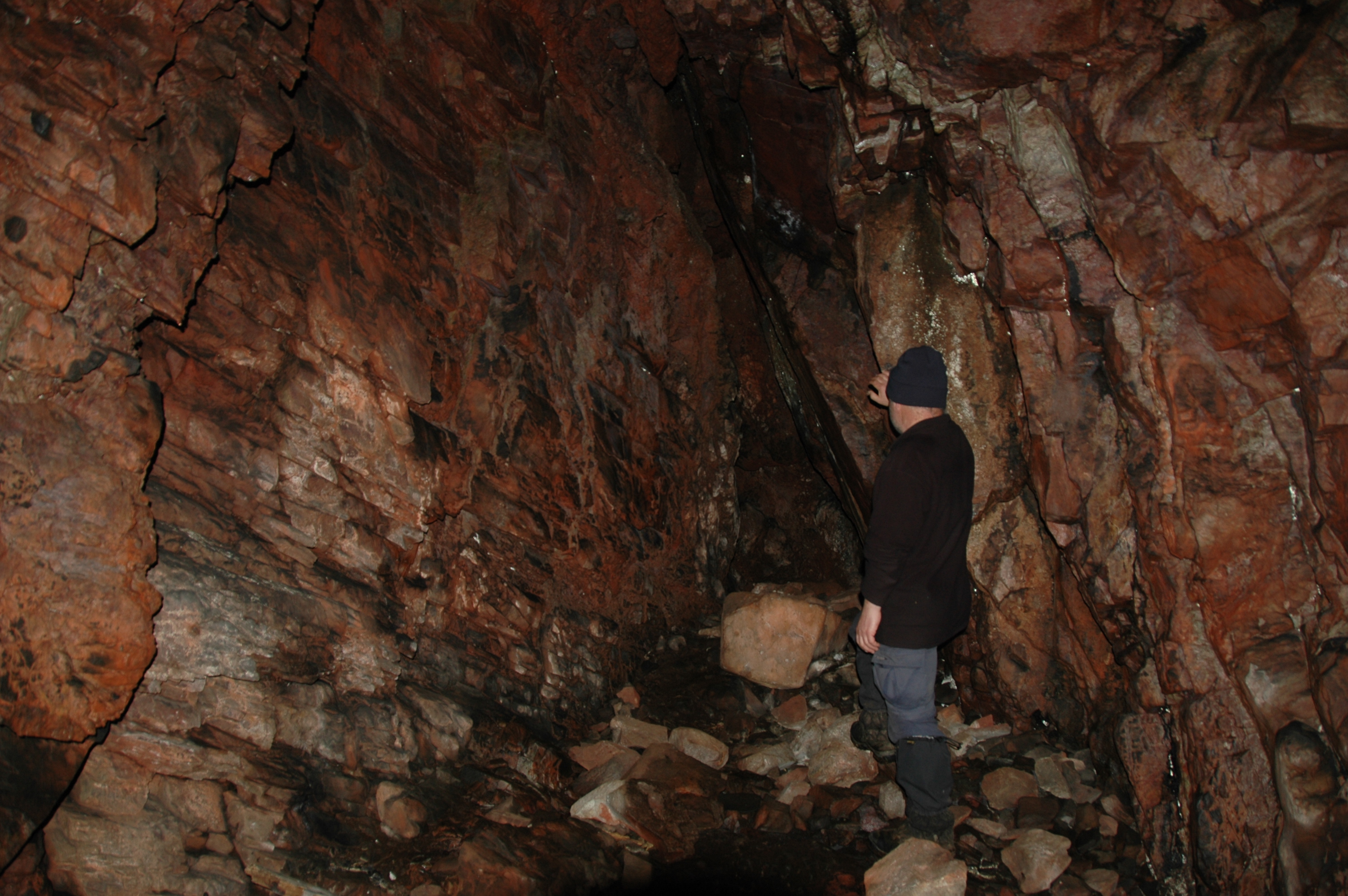 Dave in the cave below McArthur's Head lighthouse. No illicit whisky still in sight. Download full size |